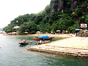 Situated about 7-8 km south-east of Bãi Cháy lies the small Ti Tốp Island. It displays a beach shaped like a crescent moon, and sand that has been washed to a snowy white by the tide. On 22 November 1962, this tiny island had the honour of receiving a visit from astronaut Ghermann Ti Tốp, a hero of the former Soviet Union, accompanied by Hồ Chí Minh. To perpetuate the remembrance of their visit, Uncle Hồ named the place Ti Tốp Island. It has now become an attractive beach for tourists and has various of tourist services